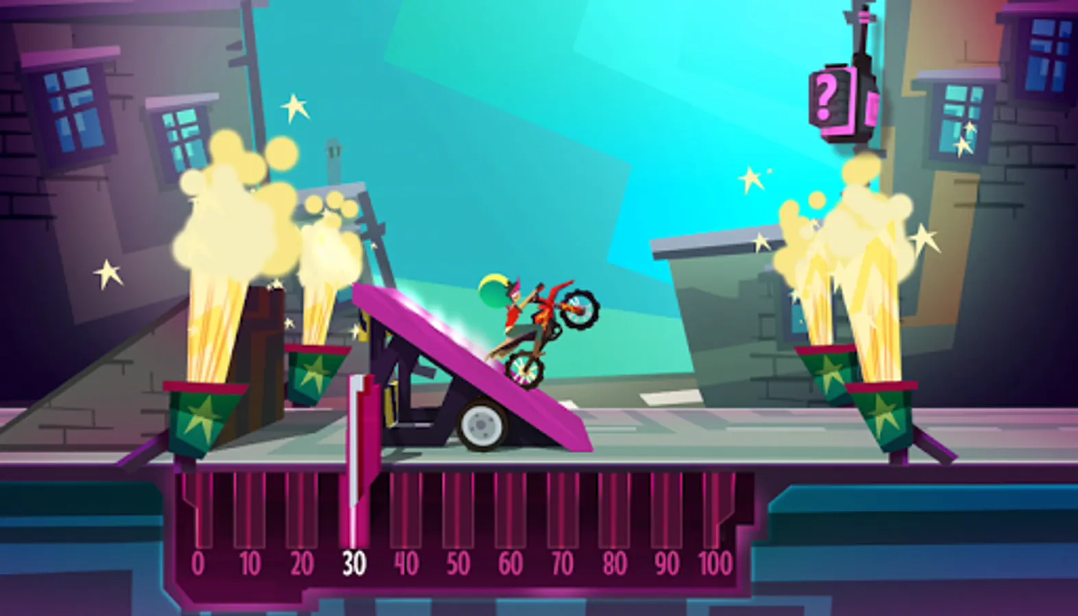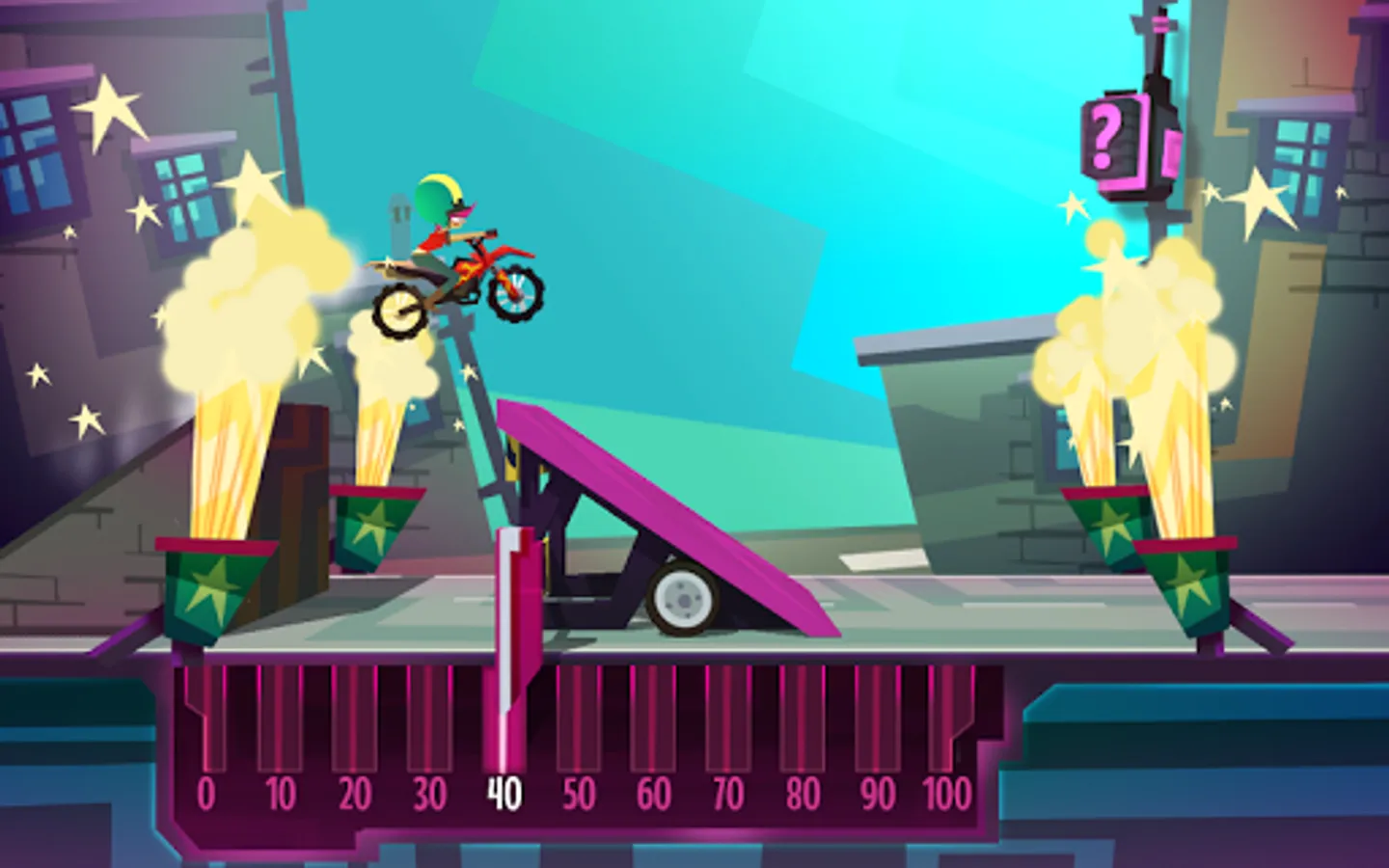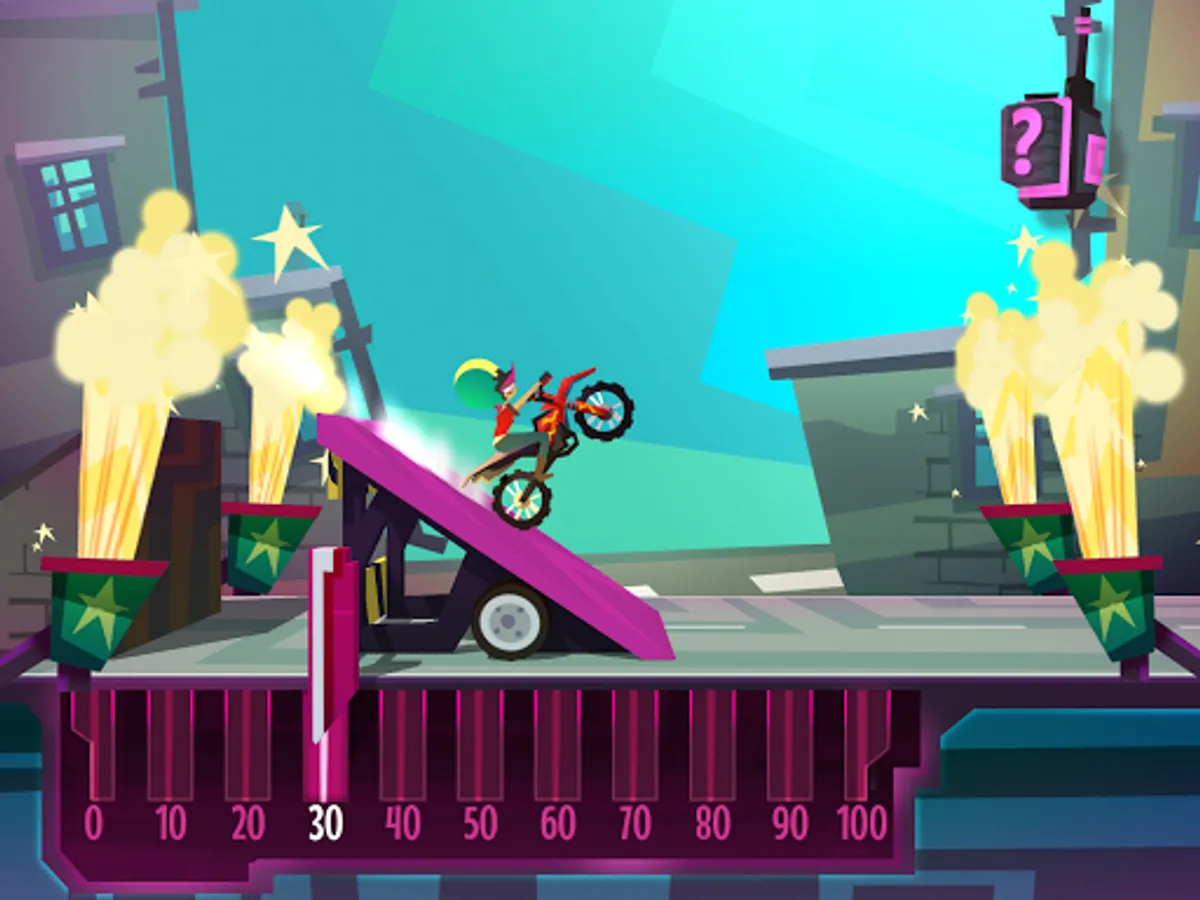Stunt Double: Learn to set the ramps in the right position to make the motorcycle stunt a success.