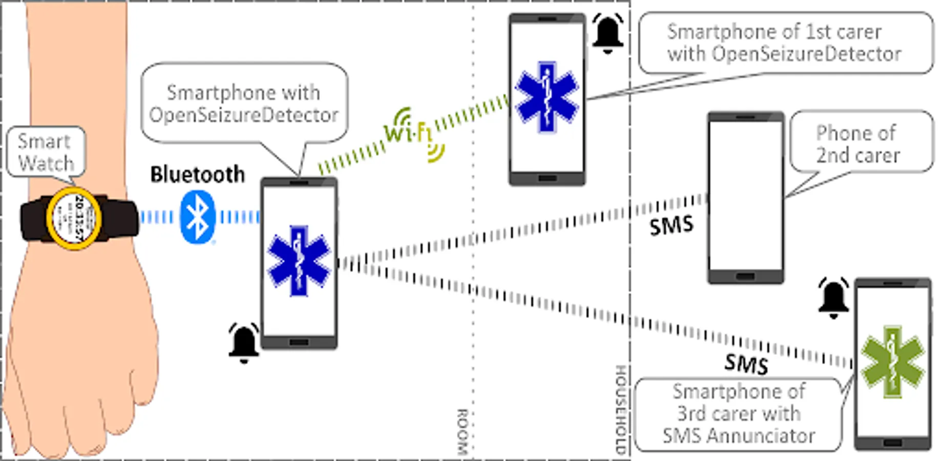 Open Seizure Detector is an epileptic (tonic-clonic) seizure detector / alert system that utilises a smart-watch to detect shaking or abnormal heart rate, and raises an alarm for a carer. If the wearer of the watch shakes for 15-20 seconds, the device will produce a warning. If the shaking continues for another 10 seconds it raises an alarm.