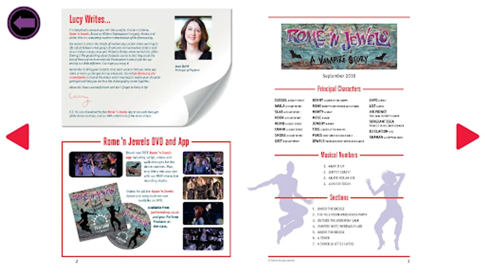 This app is the ideal companion to the show. It contains a complete copy of the script (best viewed on tablet), a Recording Studio and special walk-through videos of the songs and dance moves to help you perfect your performances and full production films of professional actors performing the musical numbers.