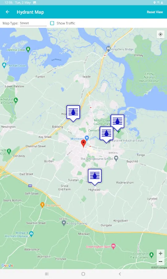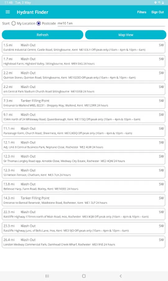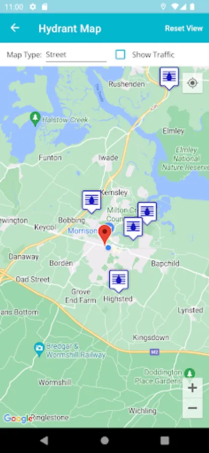 The app will display the nearest hydrants based upon actual road travel distance. Hydrants are displayed in both List and Map views.
