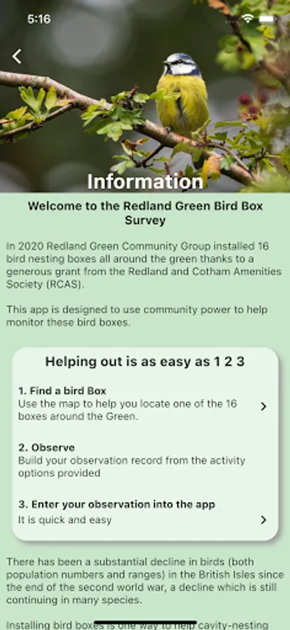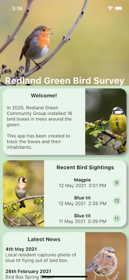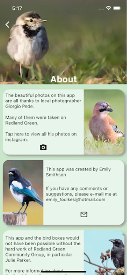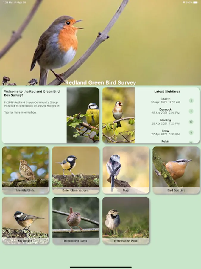 Discover the bird life around Redland Green in Bristol with this beautiful app created with stunning photos by local wildlife photographer Giorgio Pede. Help to monitor the birdlife by observing the bird boxes and entering your observations into the app for other to see. Learn all about the birds that can be found around Redland Green.