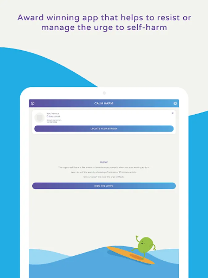 Please note that the Calm Harm app is not a substitute for the assessment and individualised treatment by a health/mental health professional.