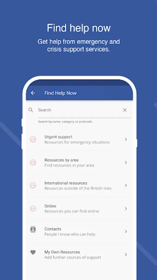• Find Help Now - Quick access to a large database of UK national and local crisis support, and online support services.