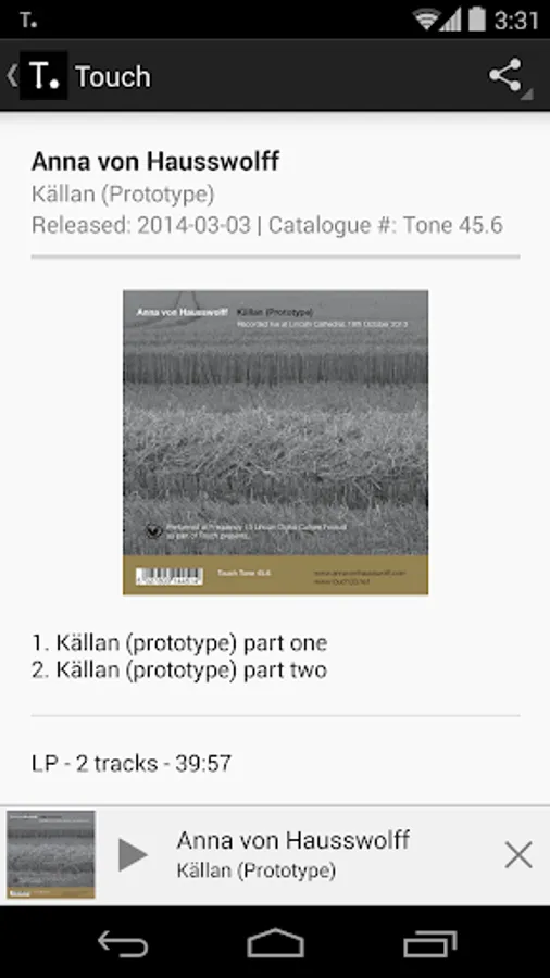 Touch is a free app that keeps you up-to-date with Touch news; read about and listen to tracks from the Touch catalogue; stream each and every Touch Radio episode; save Jon Wozencroft’s Touch cover art as wallpaper and cook meals from the Touch Recipe Book.