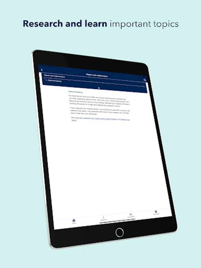 The App concentrates on the most popular home design and improvement elements that homeowners look to carry out, along with guidance on repairing and maintaining your home. Key home improvement topics include: