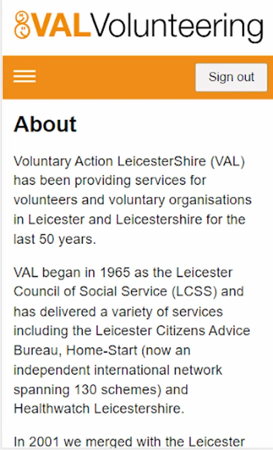 VAL began in 1965 as the Leicester Council of Social Service (LCSS) and has delivered a variety of services including the Leicester Citizens Advice Bureau, Home-Start (now an independent international network spanning 130 schemes) and Healthwatch Leicestershire.