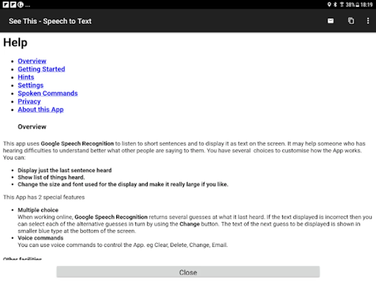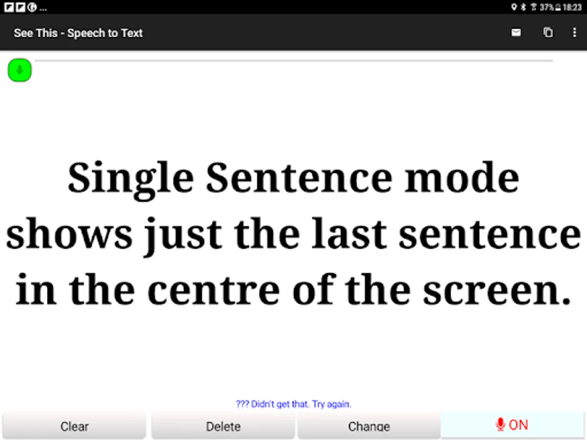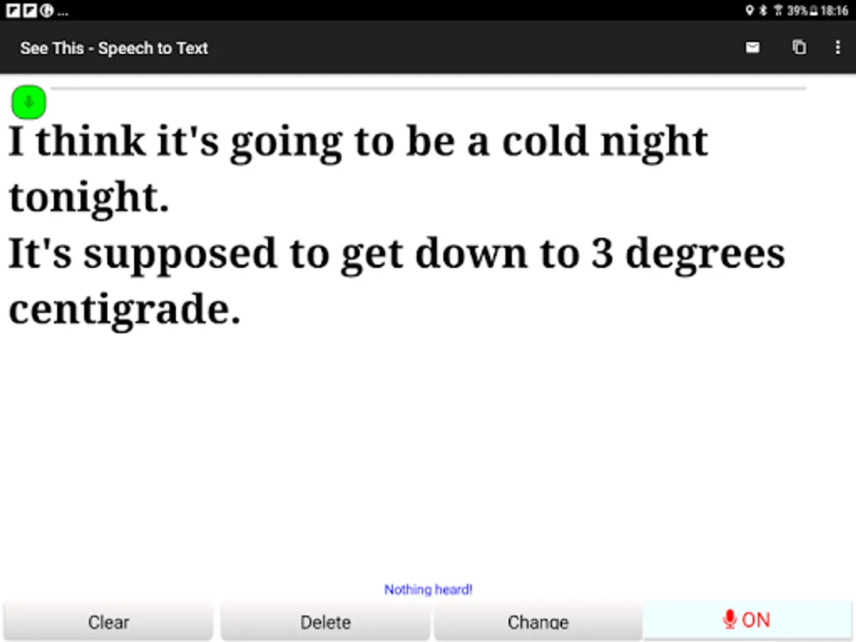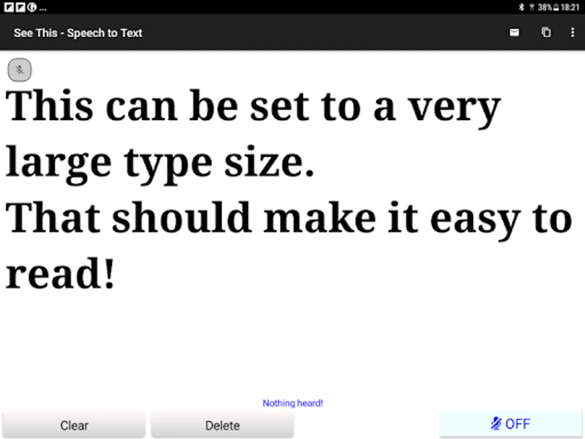 This app displays what you say onto the screen as large easy-to-read text. It should help you to communicate better with people who have hearing difficulties.