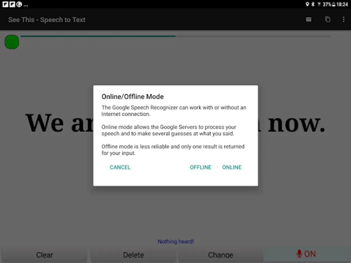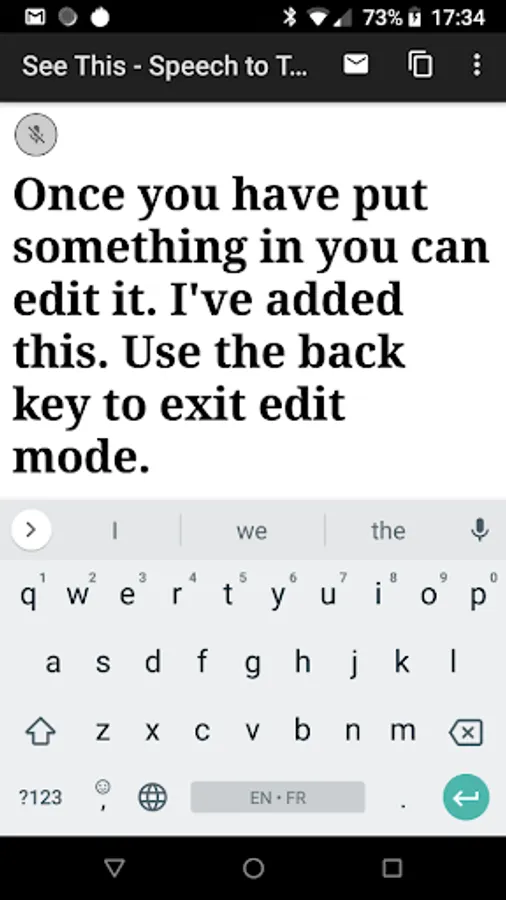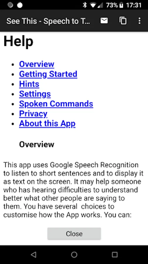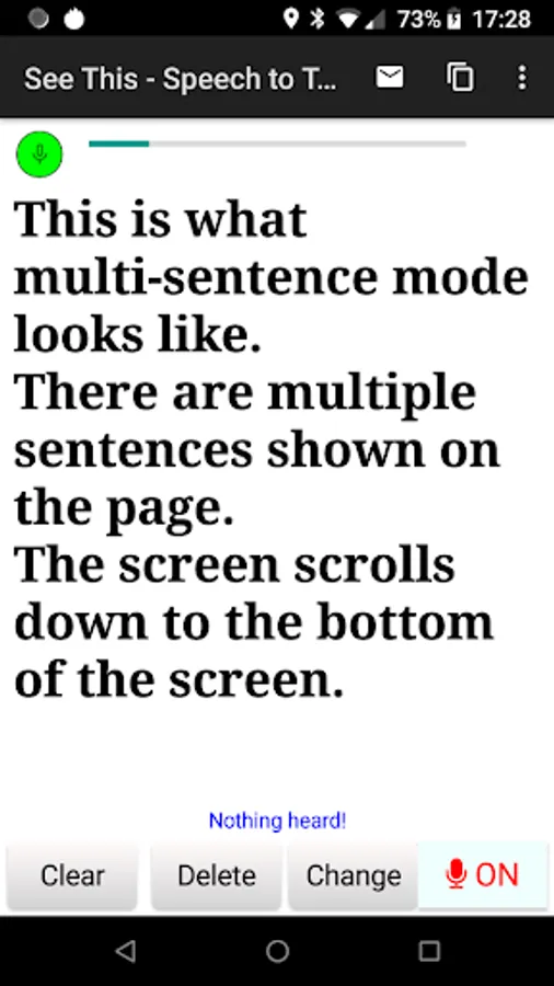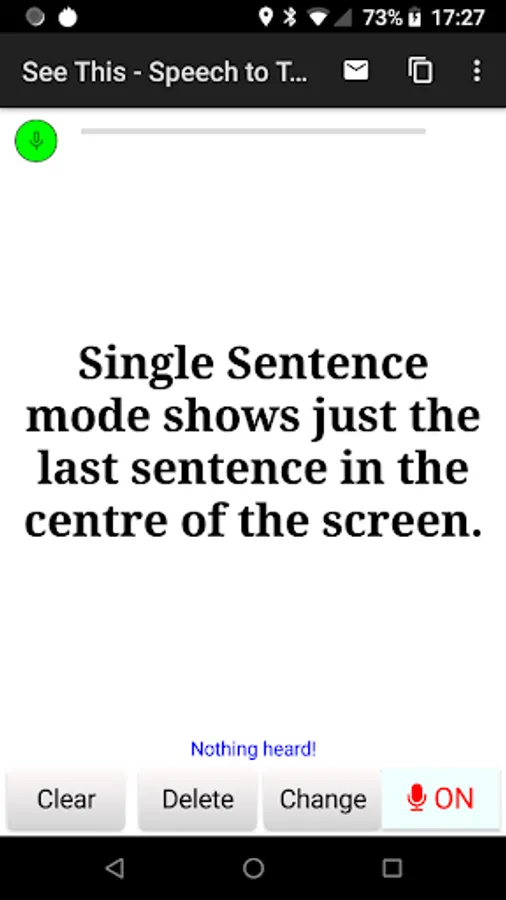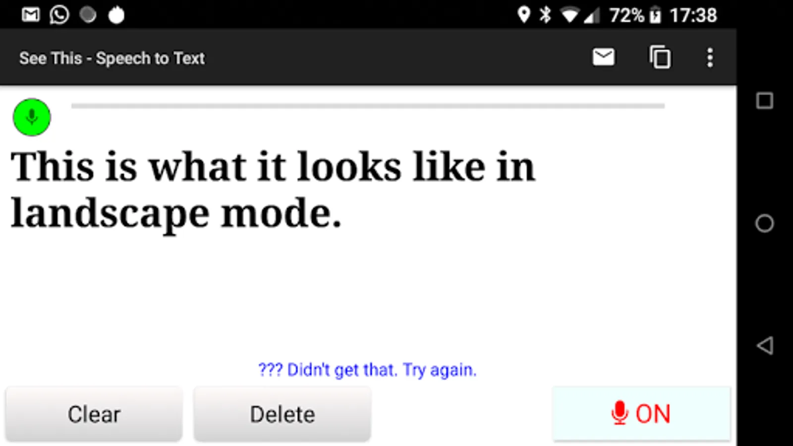 This app displays what you say onto the screen as large easy-to-read text. It should help you to communicate better with people who have hearing difficulties.