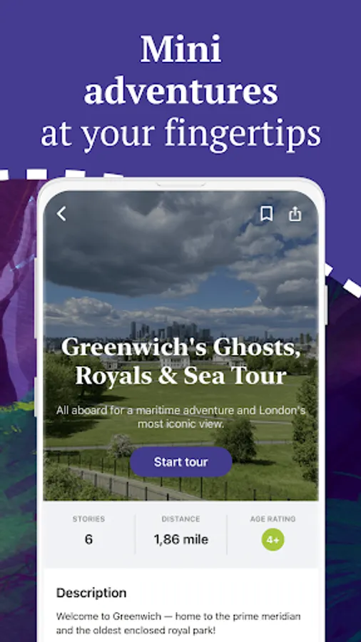 • Discover interactive self guided walking stories and tours at your fingertips, from 30 minutes to 4+ hours.