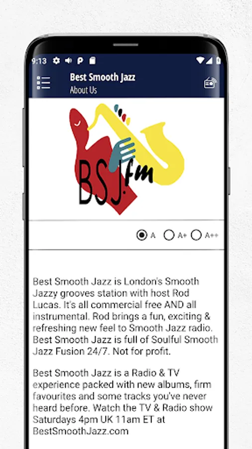 Join host Rod Lucas on London's Best Smooth Jazz Radio. All instrumental Smooth Jazz from 5 decades. The music on 'Best Smooth Jazz' is mainly instrumentals - NOT traditional Jazz, but a fusion of soulful instrumentals - covering 5 decades of Smooth Soft Cool Jazz. This is the nu groove that discerning adults enjoy with BSJ.