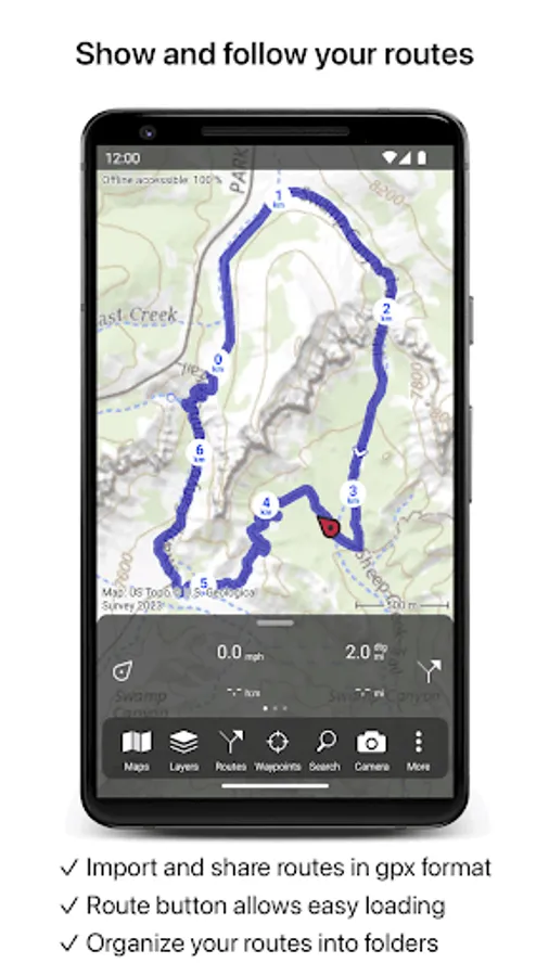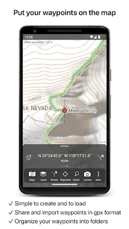 * Importing and exporting waypoints in gpx/kml/kmz/csv/geojson format.