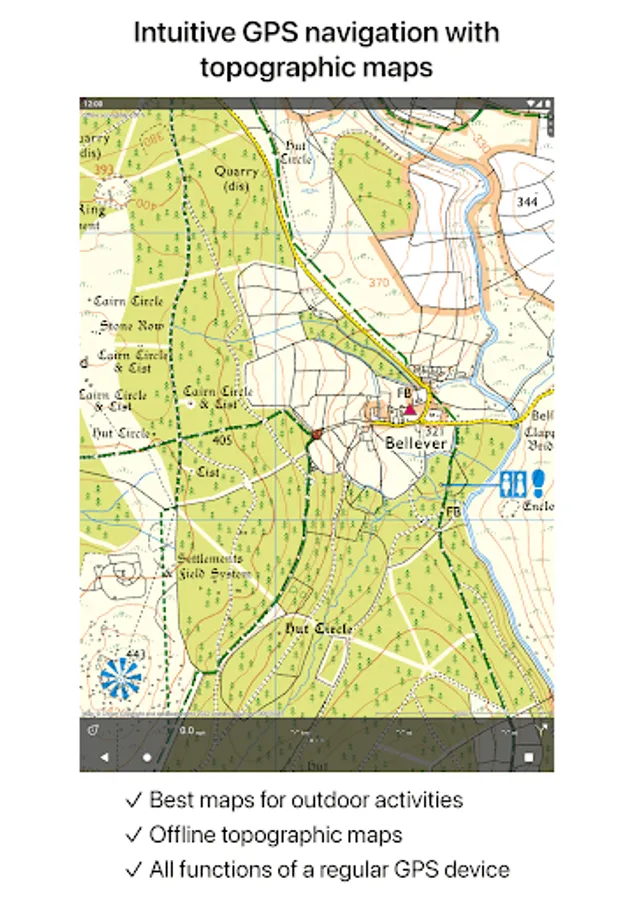 Why should you buy an expensive GPS device if you can install Topo GPS? Topo GPS contains all functions of a regular GPS device for less money, has a much more detailed map, and is more convenient to operate. The accuracy of the position determination is in favorable conditions about 5 m.