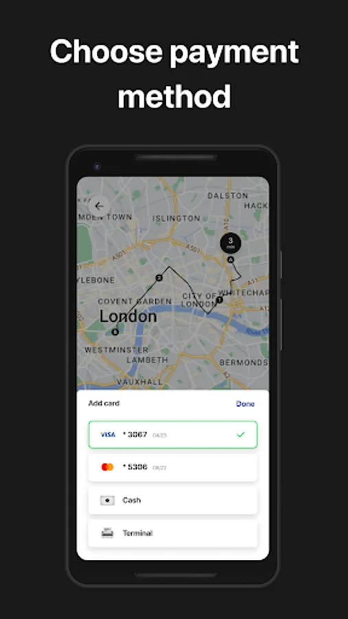 Choose your destination and a friend going in the same direction will pick you up for half the price of a taxi.