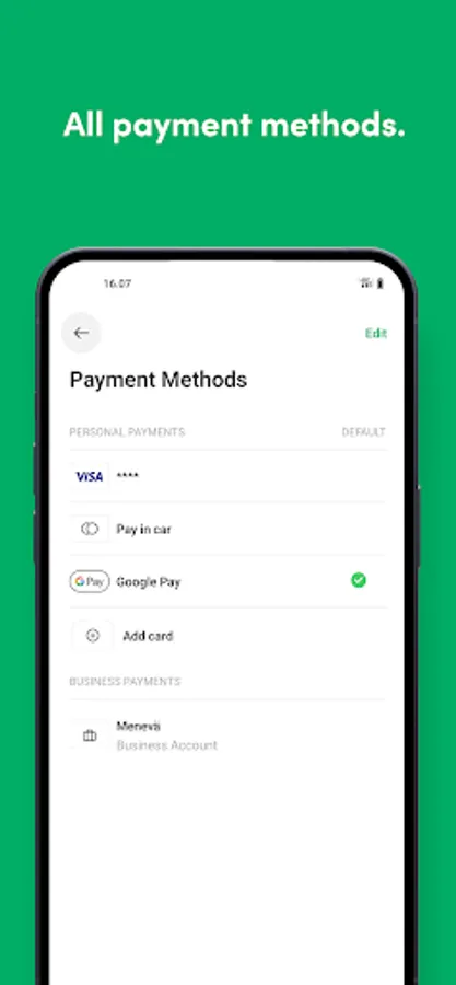 • Choose your vehicle type from choices including i.e. minivan taxis and electric vehicles