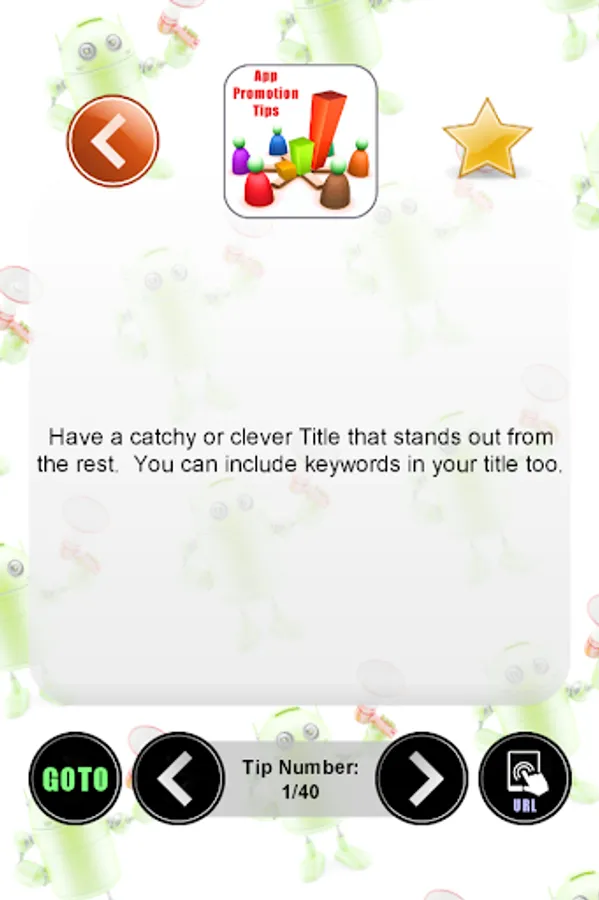 Simply install, run and press the Start button. Use the arrows at the bottom of the screen to scroll through each tip. If you see the URL button animated that means this strategy has an associated link, just click the URL button to visit the useful related link which will open in your phones default browser.
