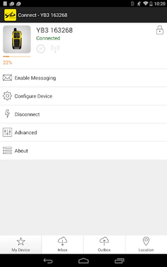 The YBConnect app can be used in conjunction with YB3 and YB3i units sold since October 2014, to send and receive short messages via email and SMS. It can also be used to configure your device remotely via Bluetooth LE.
