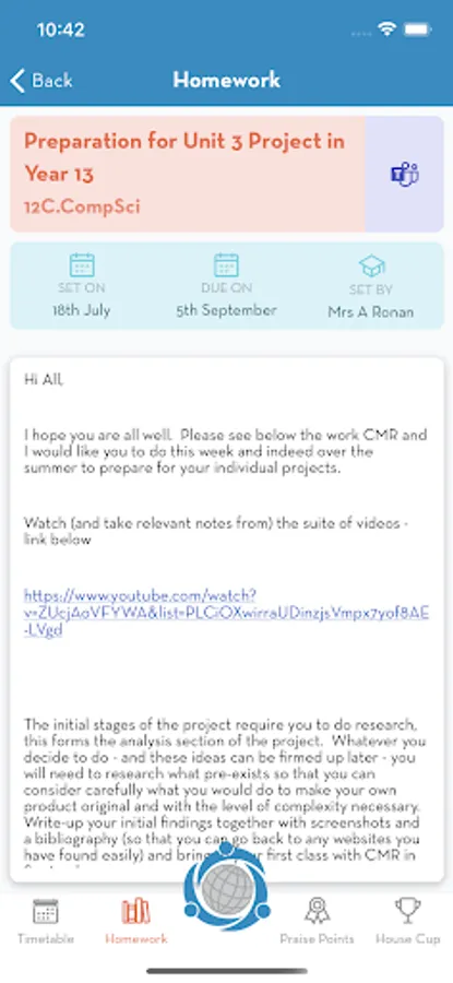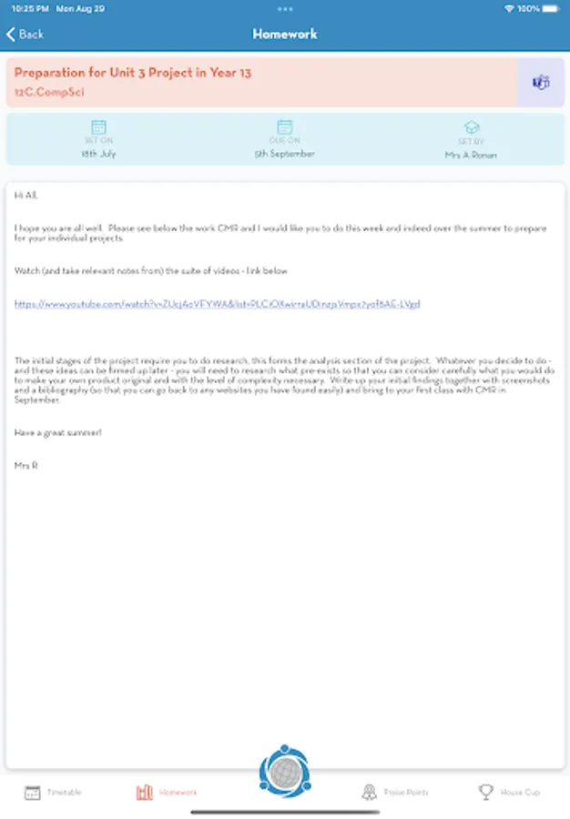 This app allows you to view your timetable, attendance, homework, praise points and the house cup standings.