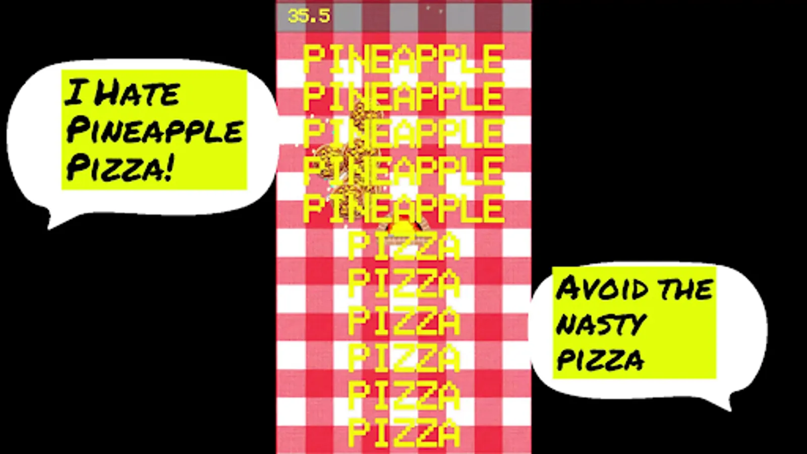 In “I hate pineapple pizza” your goal is to avoid the never-ending pineapple pizza for as long as possible.