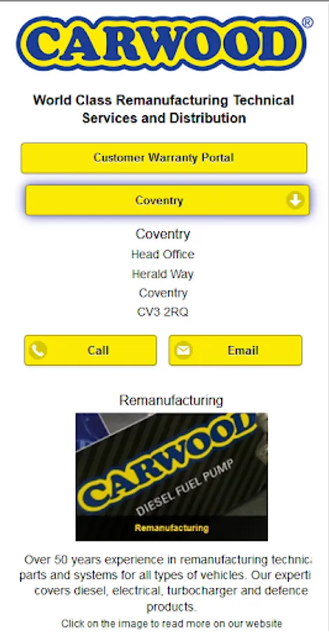 This app provides links to further information about Carwood and it's operations and provides a Warranty Portal where customers can track the progress of their warranty submissions.