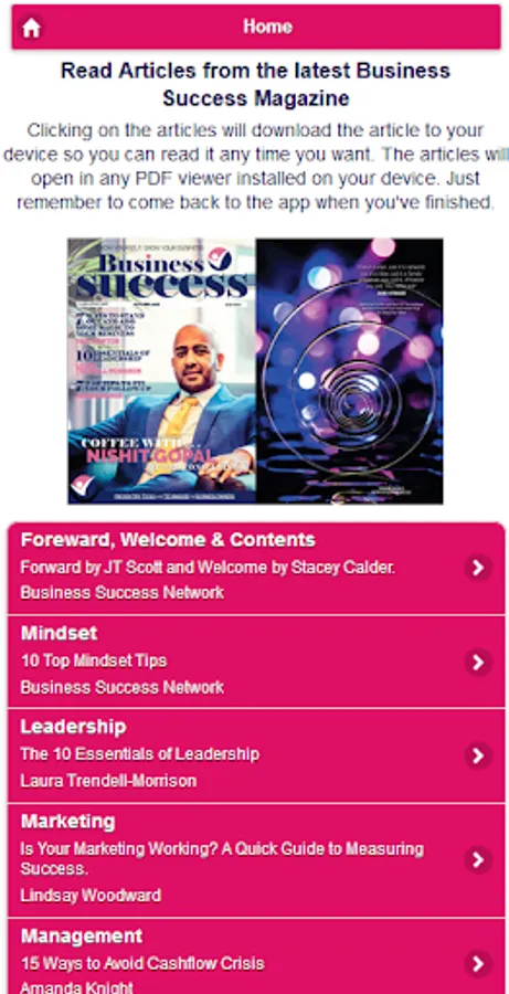We've designed this app so you can take the Business Success Magazine with you, complete daily challenges to grow you and your business, and get easy fast access to a number of business experts. (Note - this is the free release version. Keep your eyes open for a premium version very soon)