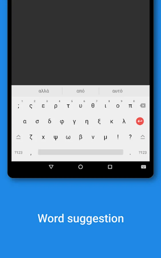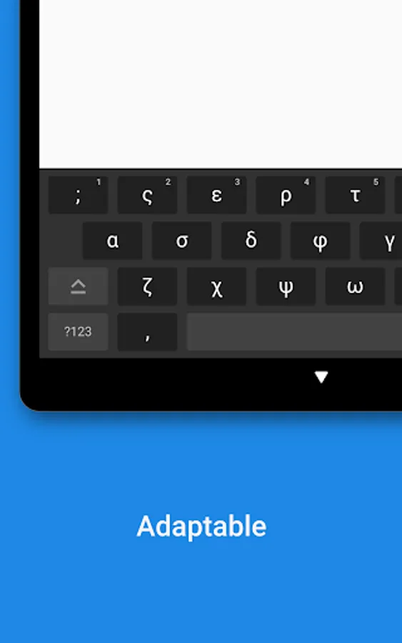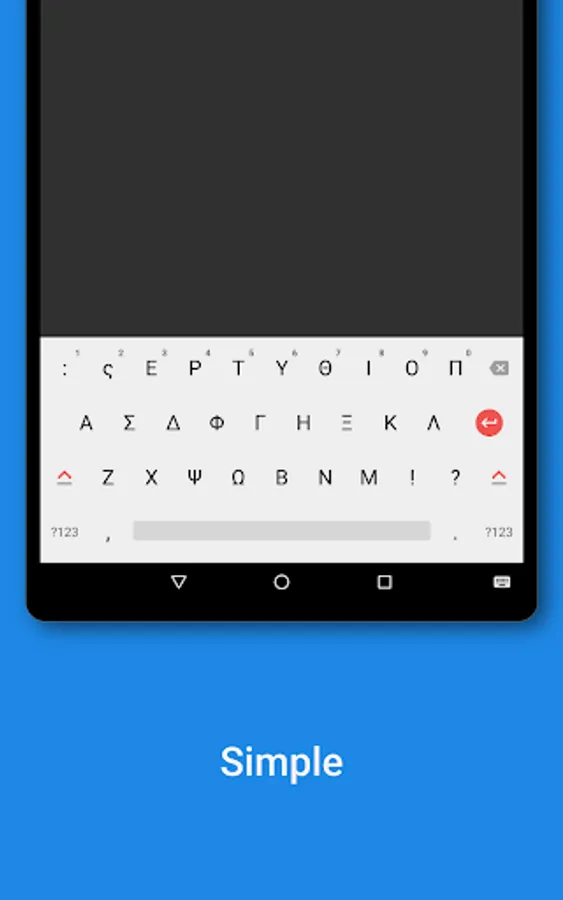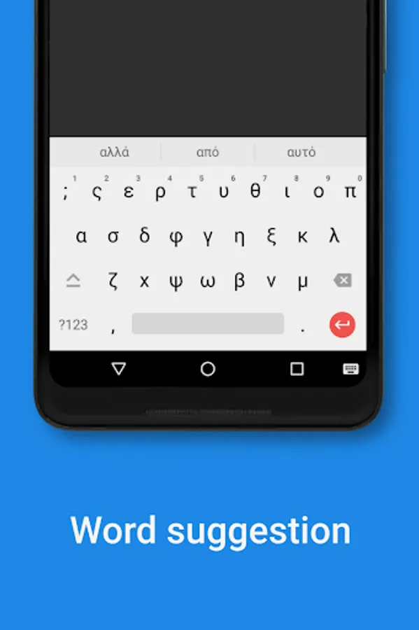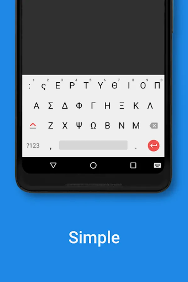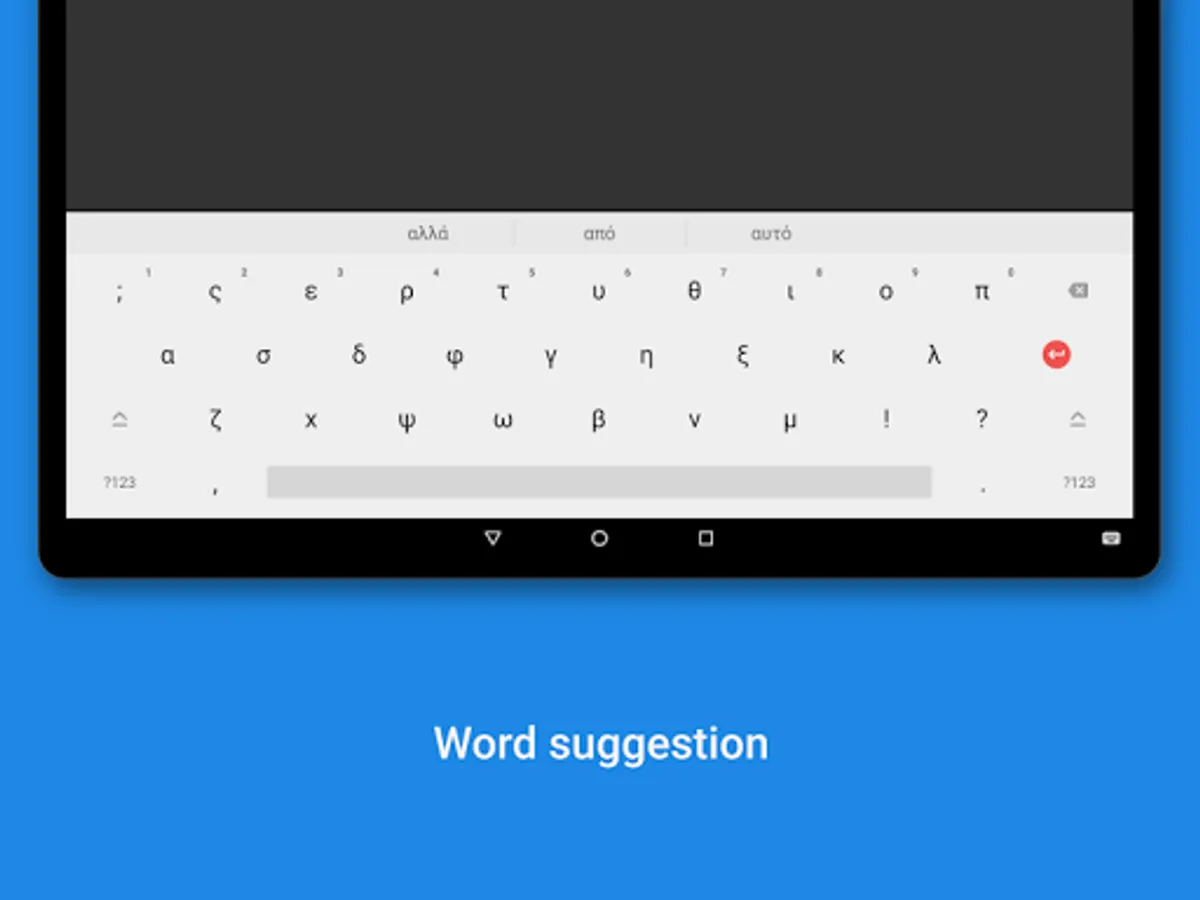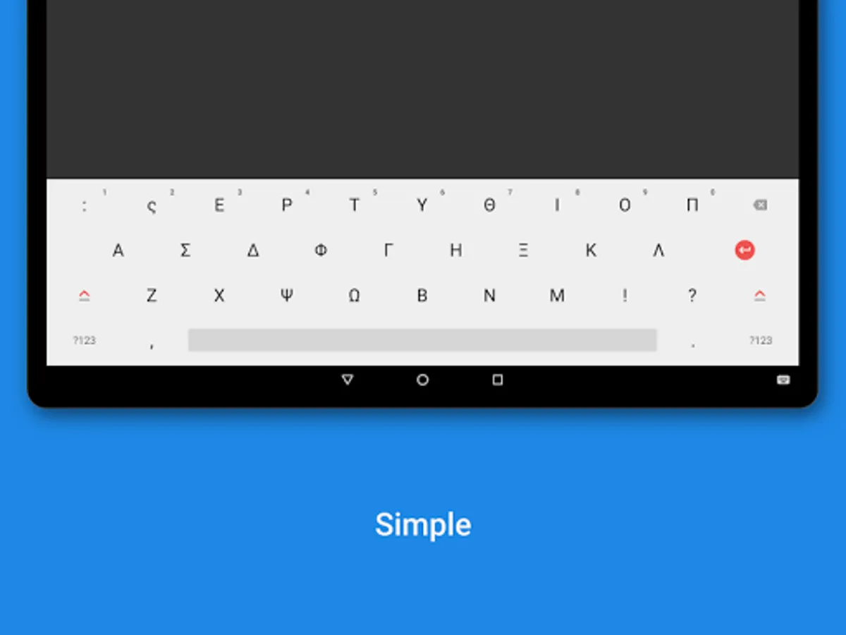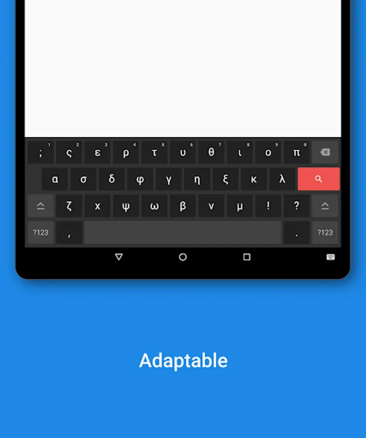 The Greek Keyboard is fast, efficient, and has little impact on device resources. Features light and dark themes, accessibility support, and has word suggestion.