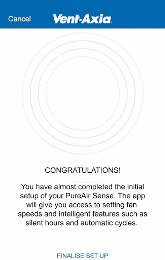Each Vent-Axia Svara® contains a unique code, which is required to pair the fan with the app. Enter or scan the code using the app’s setup wizard. The code may be found on the back of the product manual or on the arm of the pull out motor hub.