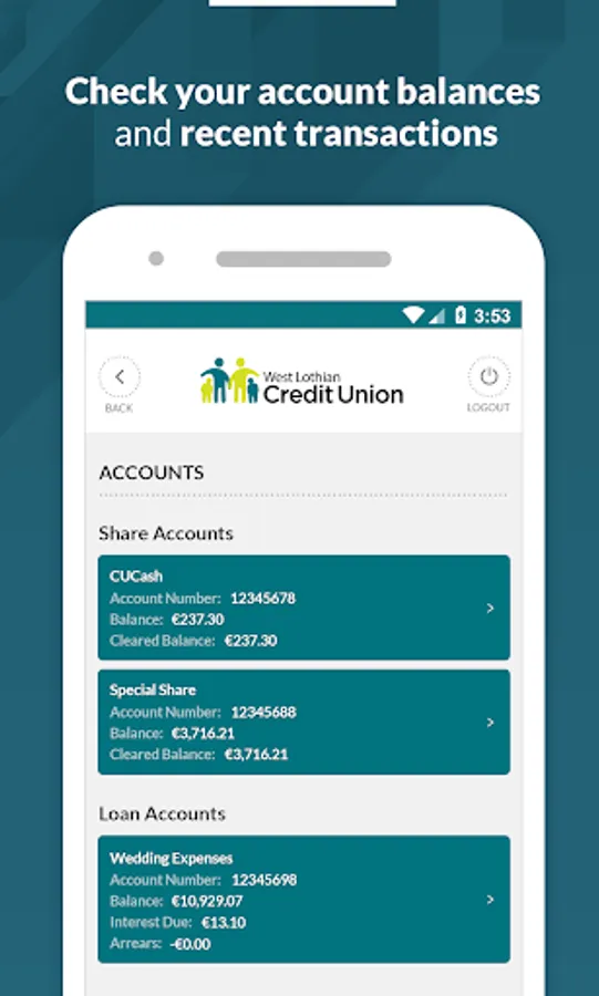 The West Lothian Credit Union App allows you to manage your Credit Union accounts 'on the go' and in a way that is convenient to you.