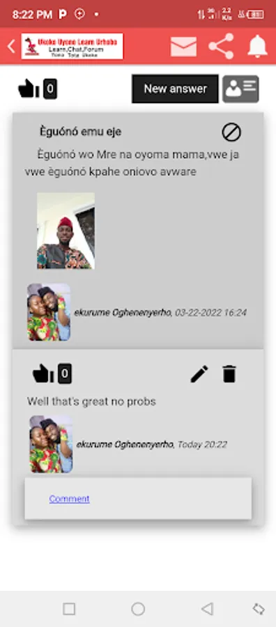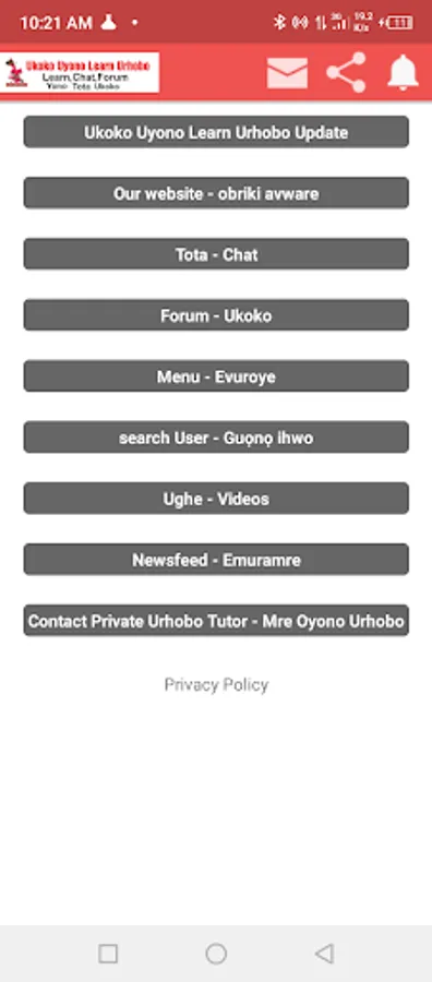Ukoko Uyono Learn Urhobo is Urhobo online language learning platform with the first interactive section.. Urhobo language is worth learning, please always try to Speak the little Urhobo you have learn always, that's how to grow in learning..