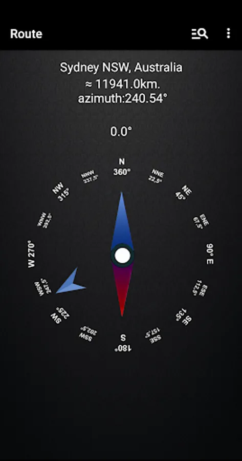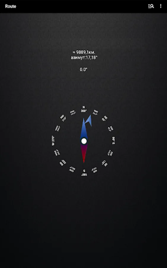 Azimuth calculation is based on the coordinates of the device obtained from the network or GPS and the selected point on the map.