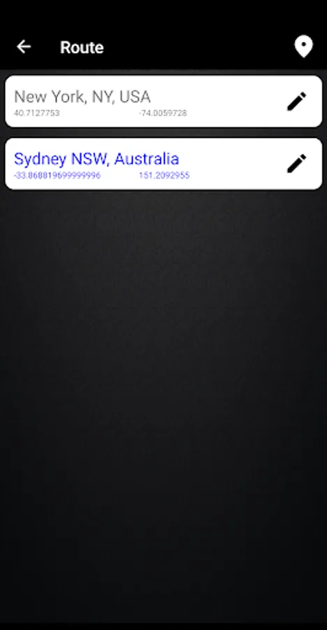 shows the approximate direction and distance to the selected point (the application is not a navigator, but simply indicates the direction).