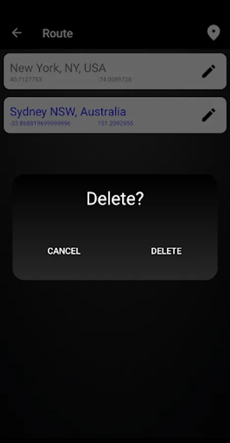 in the application: compass and direction to the selected point on the map