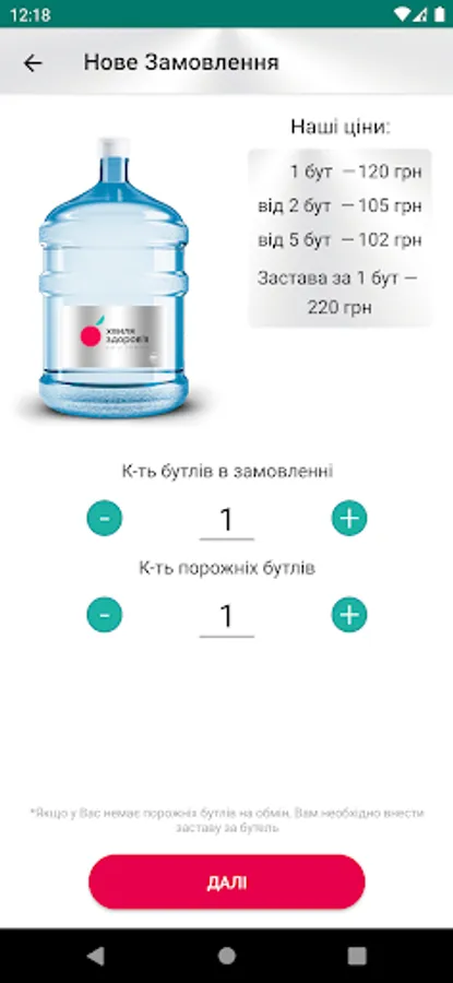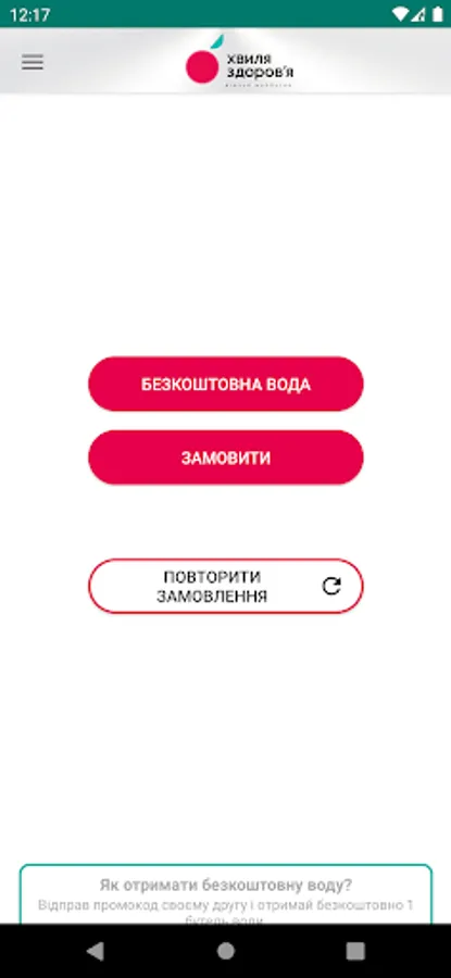 Free mobile application for fast and convenient ordering and payment of drinking water of the "Wave of Health" brand.