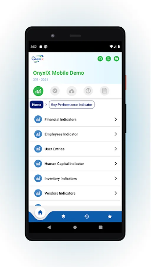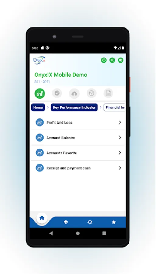 Onyx ix Mobile: An application linked to the Onyx ix system that helps the administrative or responsible person in the organization to view the financial situation, as it provides reports, performance indicators, and account statements, and also provides the possibility of conducting an approval process for documents and financial operations.
