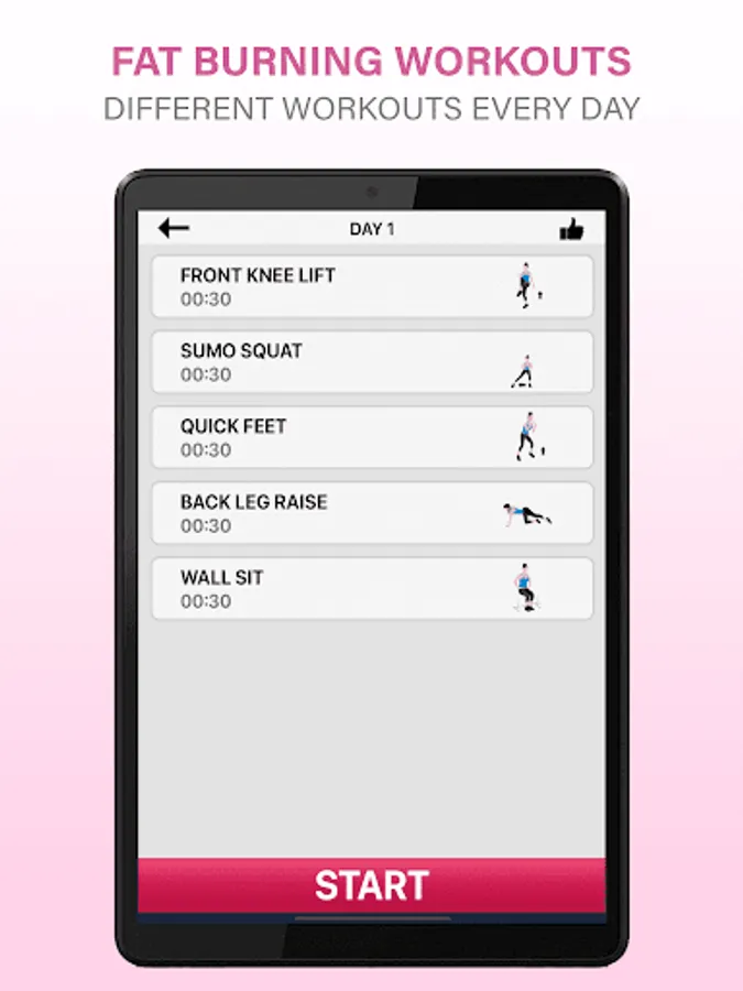 You can track calories burned and weight loss progress. Workout intensity increases step-by-step, so you can easily stay on track.