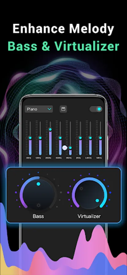 Bass booster & Equalizer & Sound App can give the music bass a louder volume and allow you feel the bass and immerse you in the 3D super volume+