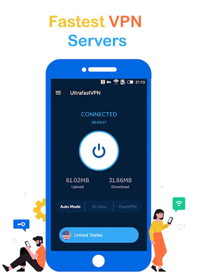 UltrafastVPN is super simple to use. With just one touch on the screen, you can easily connect to our VPN server (vpntouch).