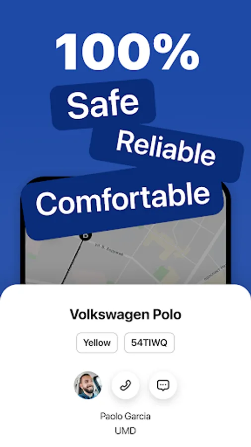 Select your travel preferences, including the date, time, origin and destination, and make a reservation. A selected and verified driver assigned to you will arrive at the scheduled time to take you to your desired destination.