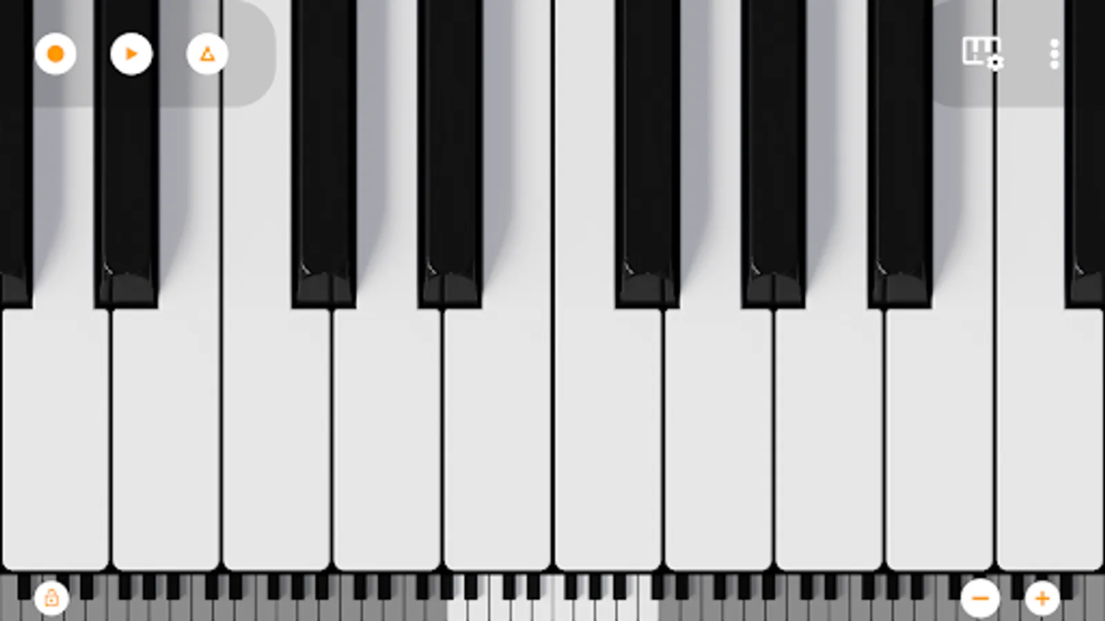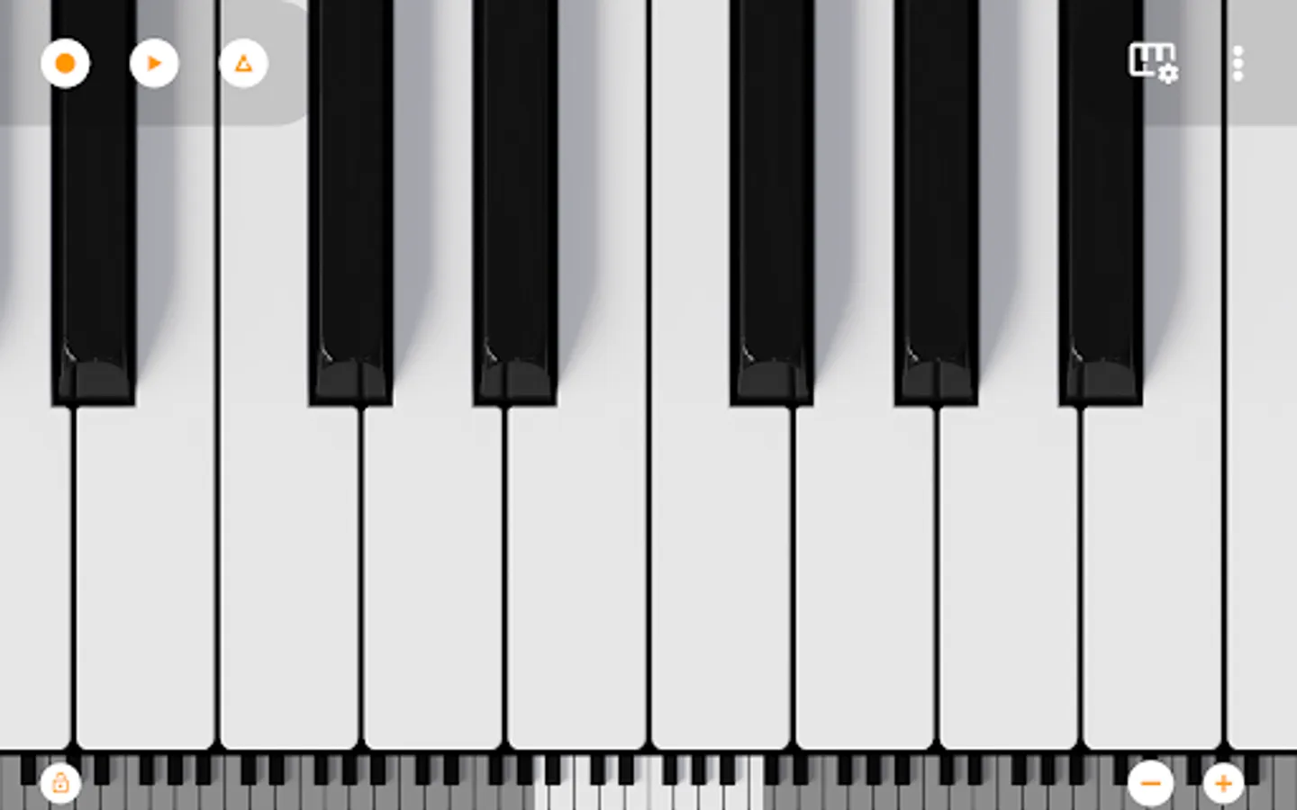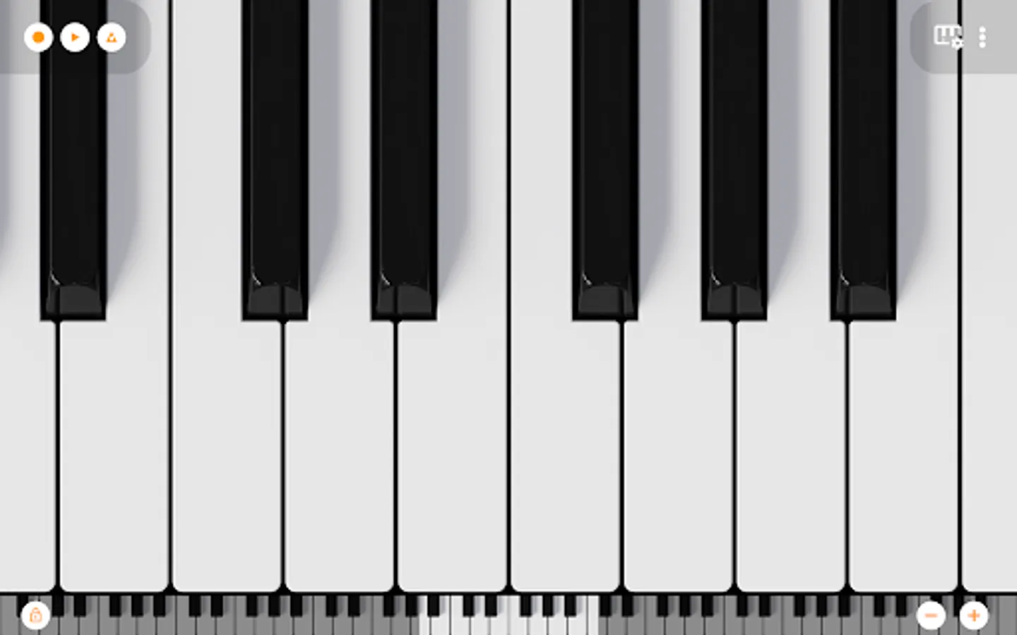 Included is the 7 octave scrollable multitouch minipiano with 128 different sounds from Mini Piano Pro.