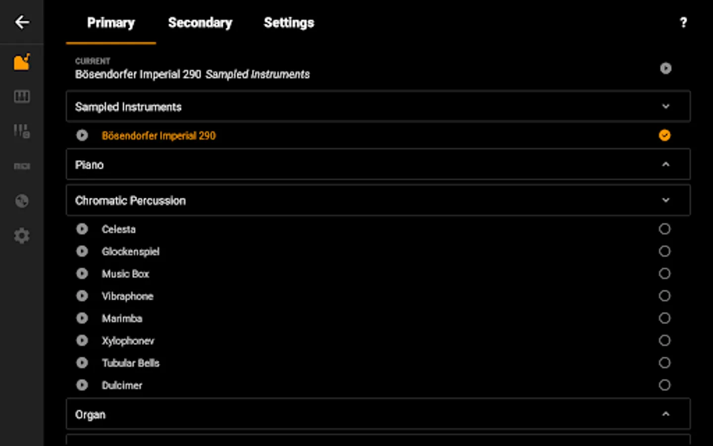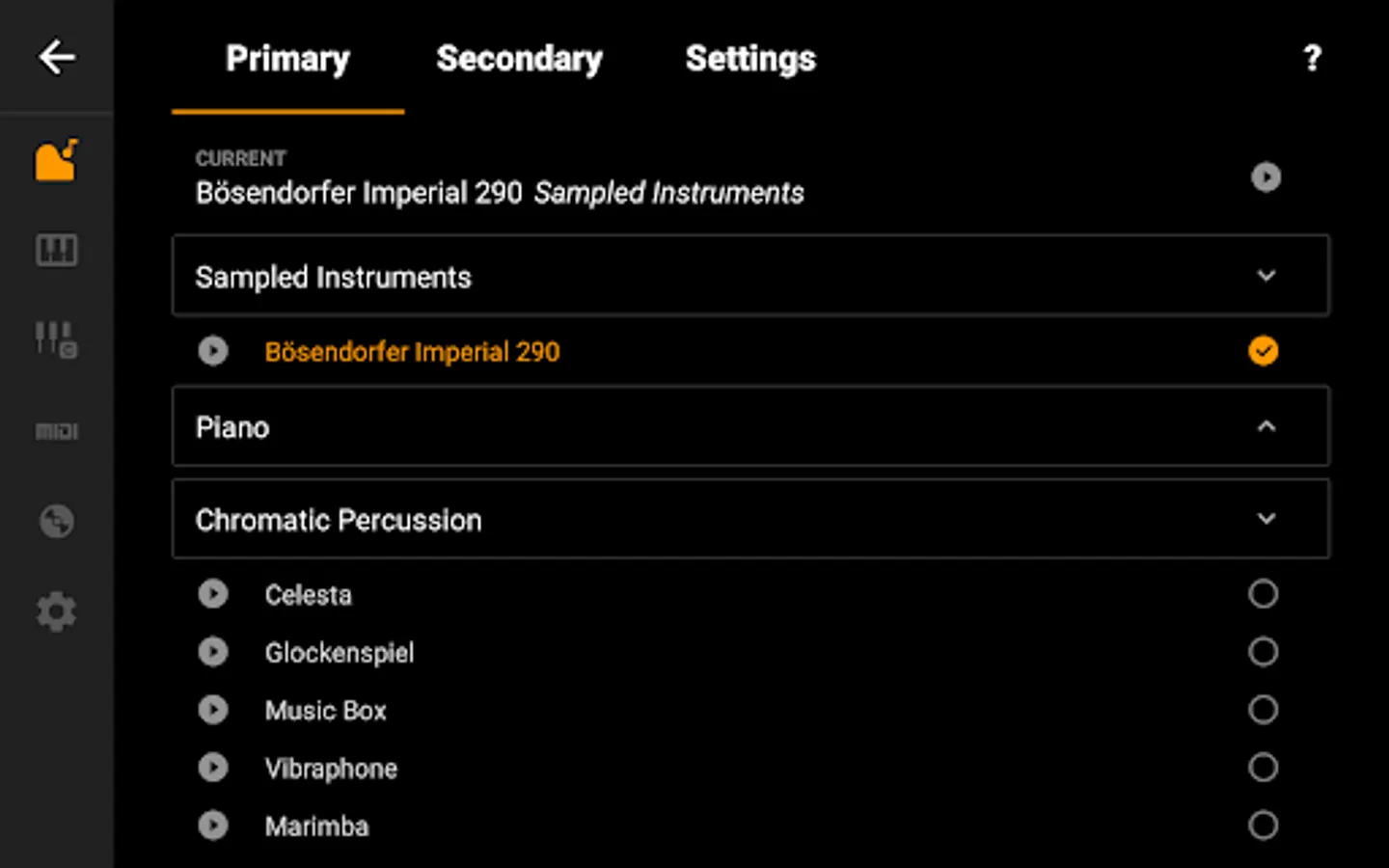 ★ Great sampled piano sound and 128 midi instruments to choose from