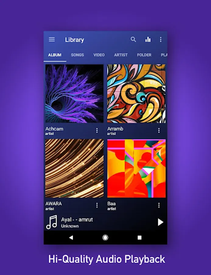 Music Player is a professional music and video playback tool. It supports ALL media formats, including 4K HD video files, and high definition music files. It is one of the best music player for android.Browse and play music songs by albums , genres , artists , songs and folder.Music Player also protects your private video from other people.