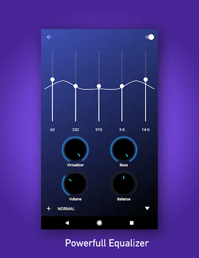 ● 5 band graphical Equalizer Bass and Virtualizer effect.