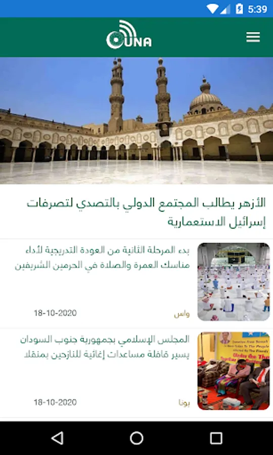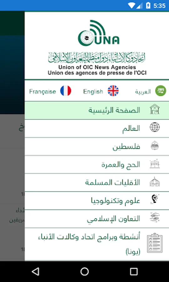 A news application affiliated with the Union of News Agencies of the Organization of Islamic Cooperation - Yuna - provides world news and the member states of the organization and highlights Islamic and regional issues, in addition to a set of news reports and video files that document events around the clock