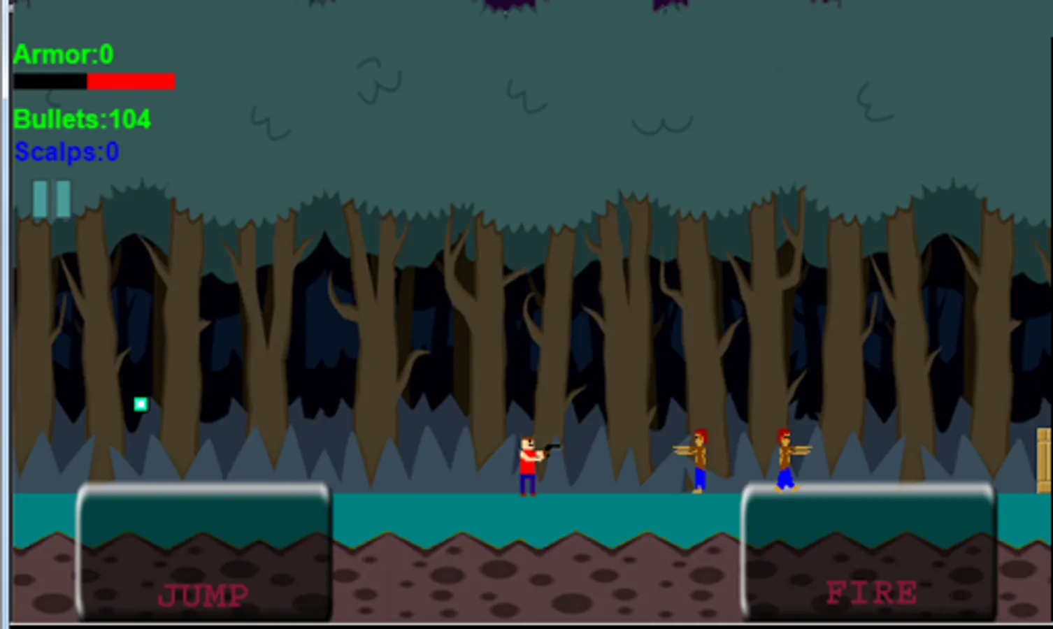 Arcade-style run and shoot. It is necessary to avoid collisions with zombies, skeletons and other undead and jump over obstacles to get to the next level. Two difficulty levels. Offline. Recommended system requirements: screen 800 by 400 pixels, 1 GHz processor.