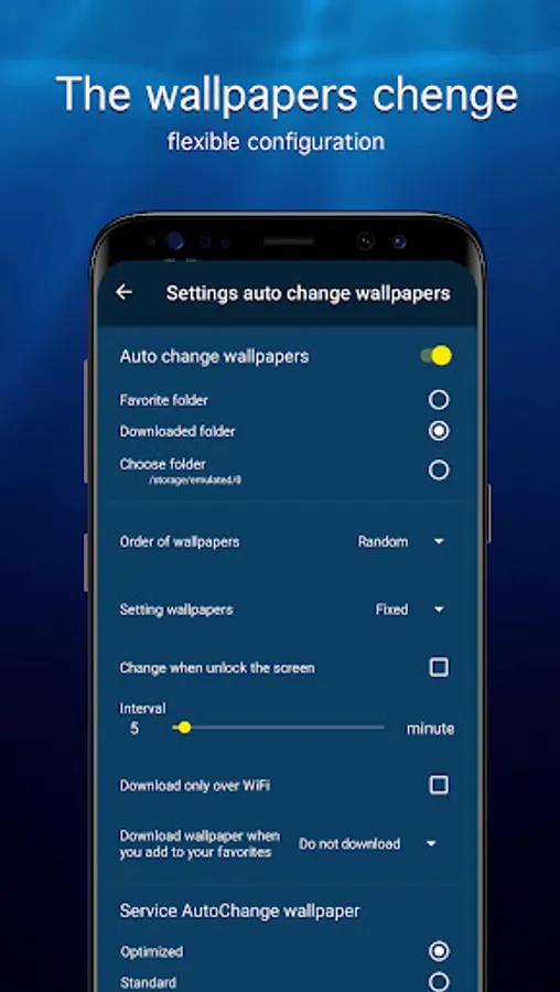 • Automatic background change with the specified interval (live underwater wallpapers)