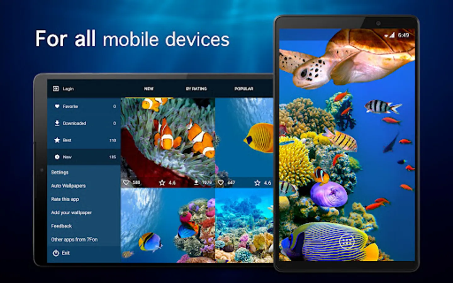 Install the lovely underwater and fish HD backgrounds from 7Fon right now!