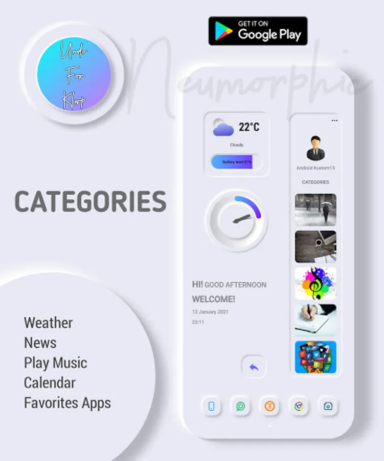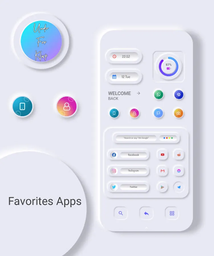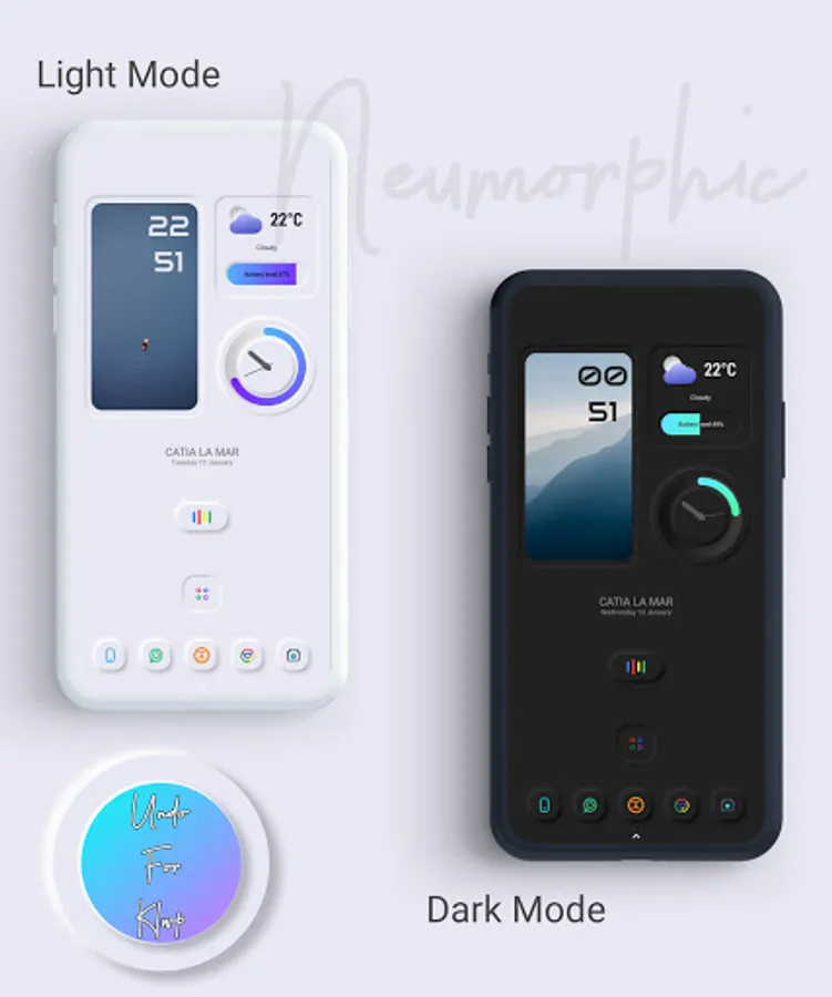 It is a theme with a nice and interactive Neumorphic effect for KLWP.
