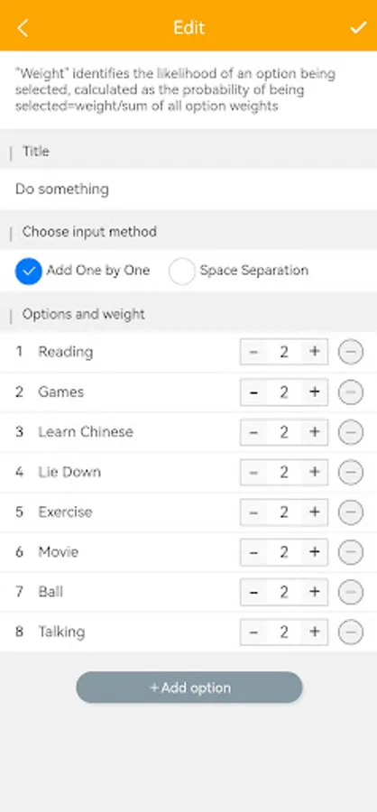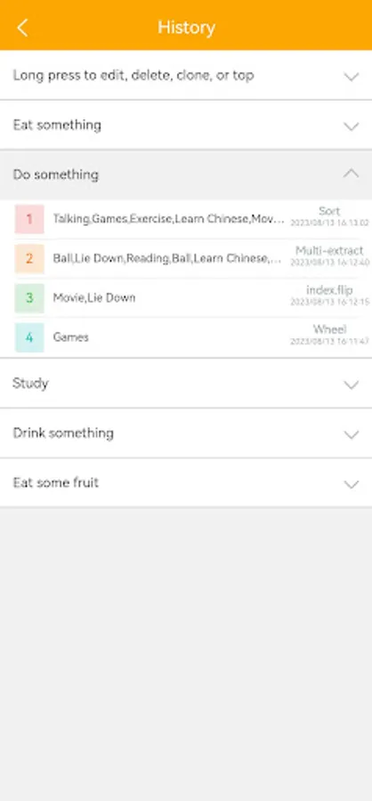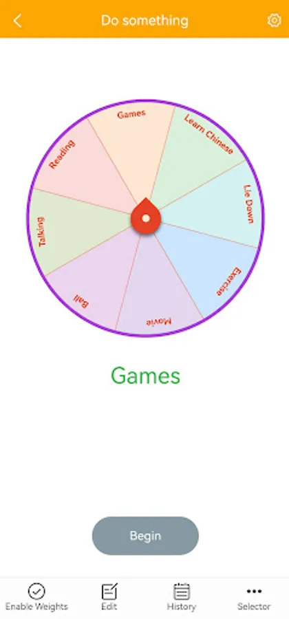 An option can be randomly selected from several specific options by turning the wheel, flopping, drawing, and sorting.