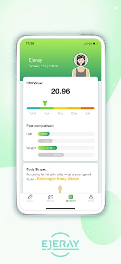 Body shape is related to health. Attaching importance to body circumference measurement is not only for beauty, but also for health. The app integrates with body measurement tape and allows you to record body circumference quickly. It can track your body data over time in beautifully charts, and you’ll get a intuitive body shape analysis report. EJERAY app helps you to see your health with ease and effort!