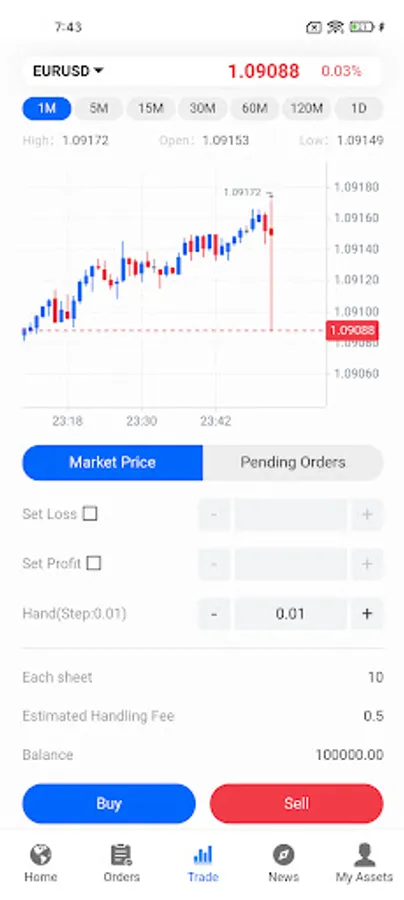 * 3種圖表類型:直條圖,日式蠟燭圖和折線圖,進行有效交易
