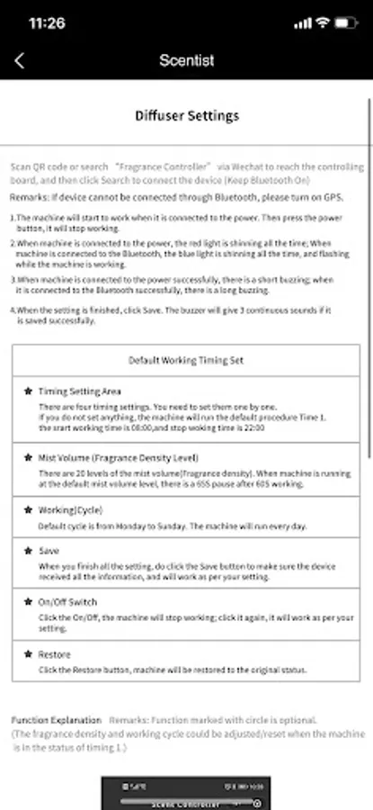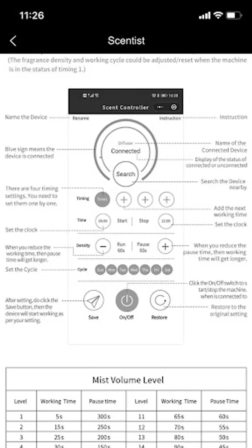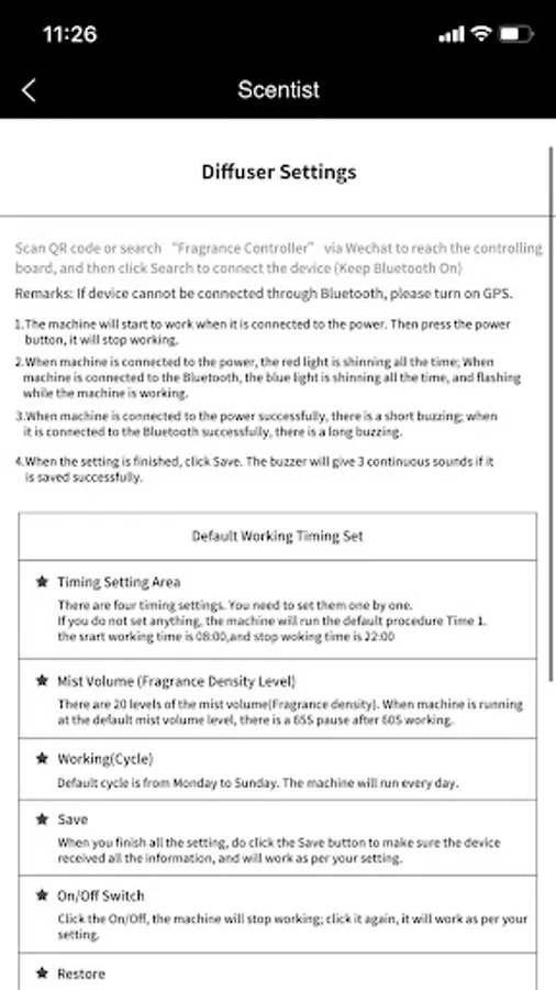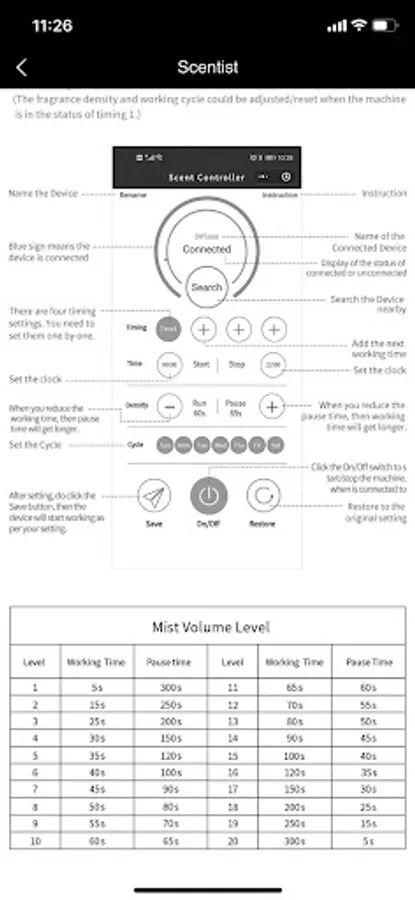 The APP Scentist is an application independently developed by Shenzhen Chenghaoxing Scent Technology Co., Ltd., which is mainly used to control its intelligent scent machine equipment. The main functions include: setting the working time and date by time period, concentration of the fragrance; auto on and off, restoring the factory settings of the scent machine and the name, display and use instructions of the device.
